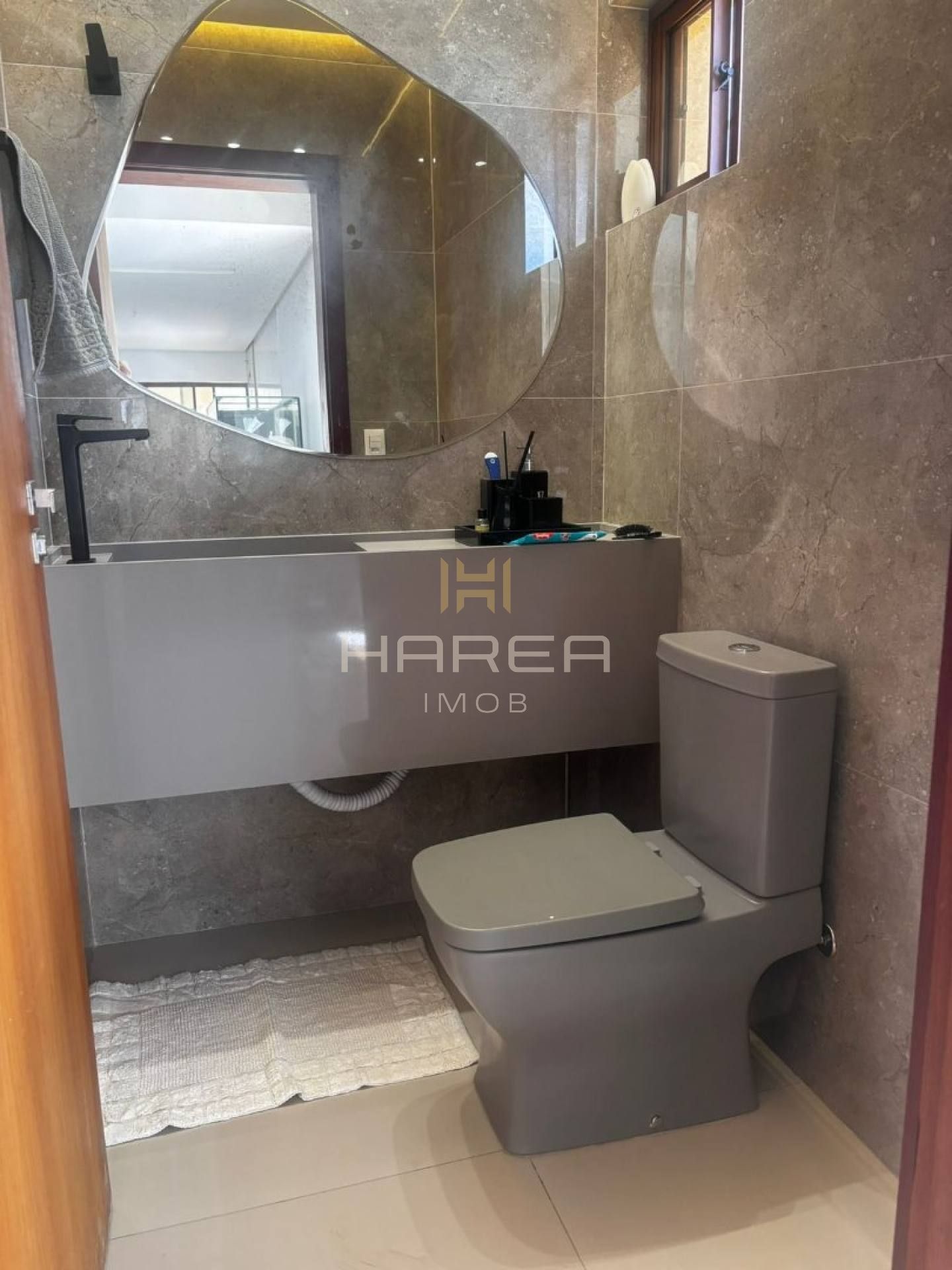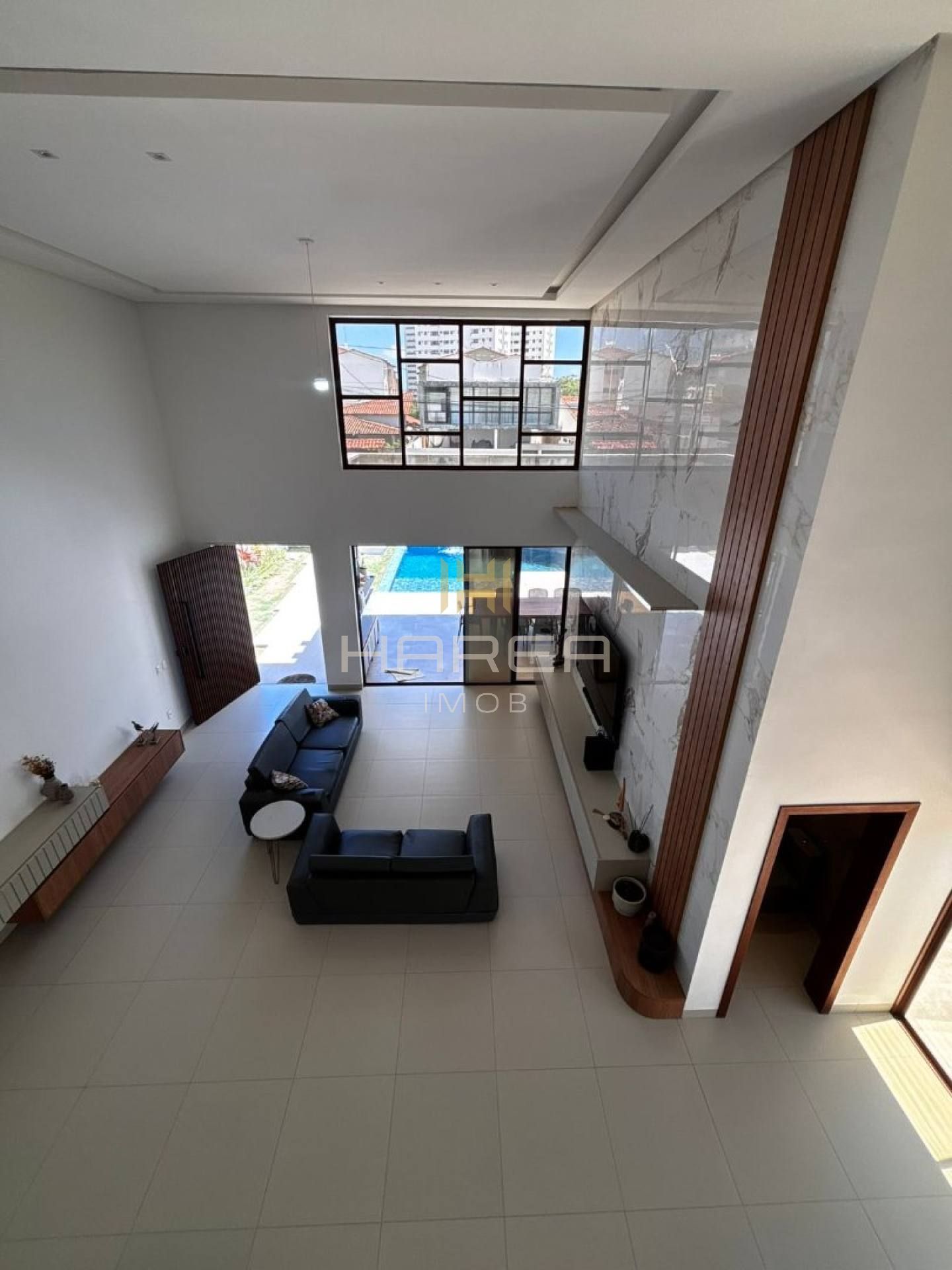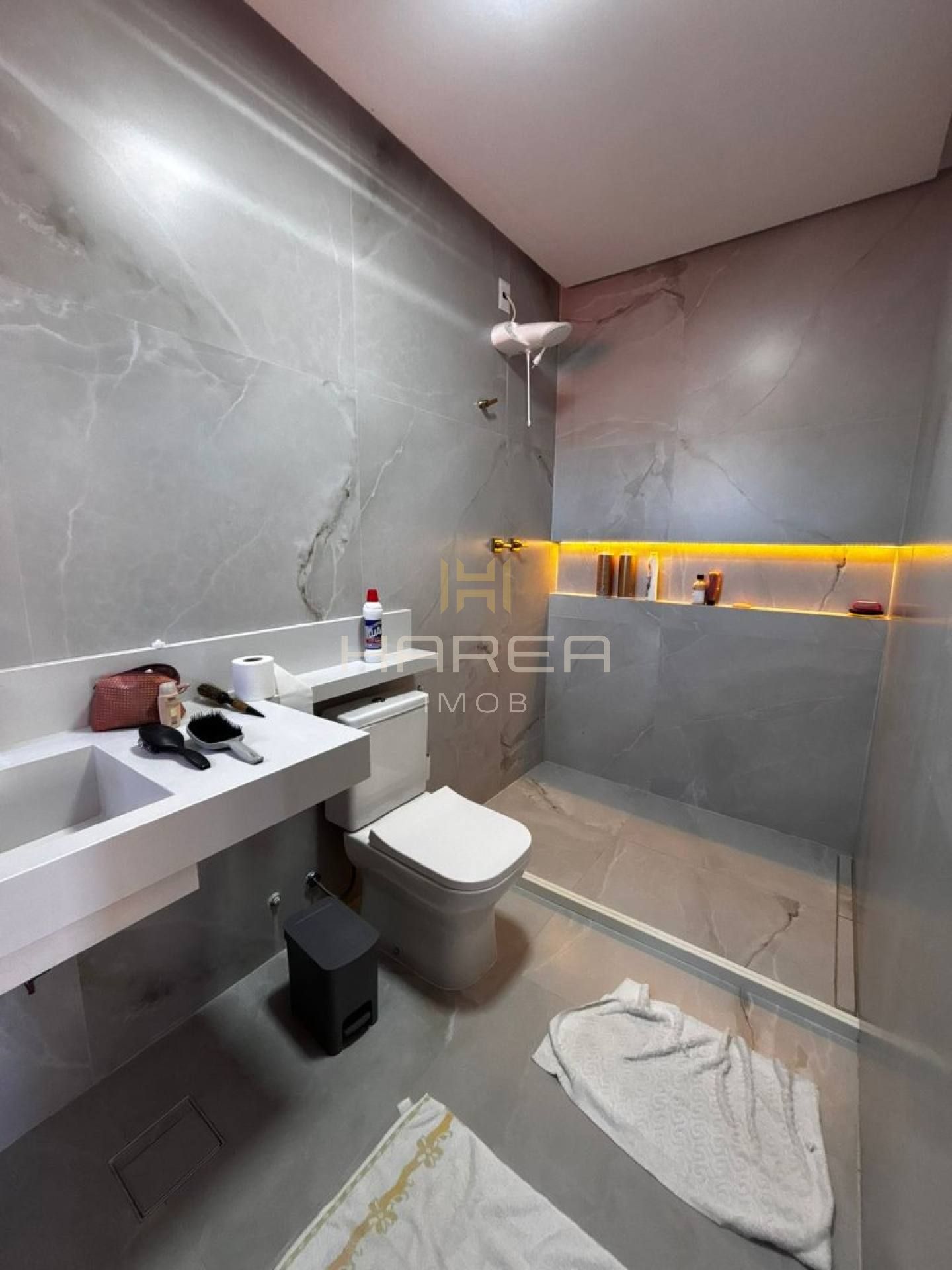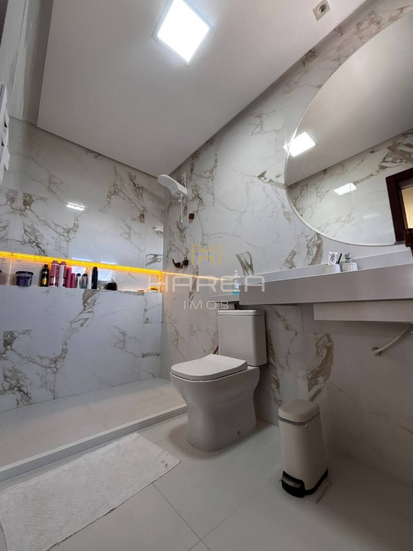 Todos os cômodos apresentam acabamento em alto padrão, com piso em porcelanato e bancadas em mármore.
